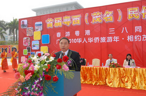 林琳在啟動儀式上作了講話。他首先代表廣東省僑辦向茂名全市人民表示熱烈的祝賀,并預(yù)祝首屆粵西(茂名)民俗風(fēng)情旅游節(jié)取得圓滿成功!他指出,茂名市在首屆粵西民俗風(fēng)情旅游節(jié)中同時(shí)舉辦“廣東2010年華人華僑旅游年·相約茂名”活動,既體現(xiàn)了這次旅游節(jié)的僑鄉(xiāng)特色,更體現(xiàn)了茂名市各級黨委政府對僑務(wù)工作的重視,對為僑服務(wù)和以僑為橋搞活經(jīng)濟(jì)、搞活旅游所作出的巨大努力,認(rèn)為此舉必將為溝通海內(nèi)外茂名鄉(xiāng)親的聯(lián)系、發(fā)掘茂名旅游資源、進(jìn)一步拓展和繁榮茂名的旅游市場發(fā)揮出積極的作用。
