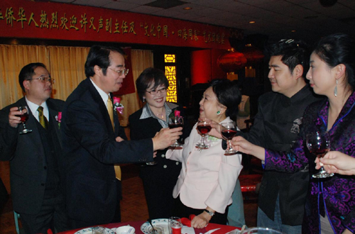 “文化中國•四海同春”藝術(shù)團是在當(dāng)?shù)貢r間3月2日抵達芝加哥的。3日下午,許又聲與芝加哥僑界代表舉行了座談。來自各個領(lǐng)域的僑胞對代表團的來訪紛紛表示衷心的歡迎,并就弘揚中華文化、和平統(tǒng)一、中文教育等提出建言和建議。許又聲說,近二十位代表的發(fā)言很好,很有啟發(fā)。他說,這次“四海同春”來訪,是為了慰問僑胞,為新春祝福,給大家增添快樂。“也希望通過我們的支持幫助,大家能更多地自己搞好春節(jié)活動,把這樣一個喜慶團圓的重要節(jié)日逐步推向世界!