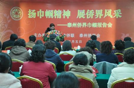 泰州市僑聯(lián)主席顧永伯主持報告會,市僑商會會長曾憲相致辭,全市歸僑僑眷、留學(xué)生眷屬、僑商等共60多名女代表參加了報告會。