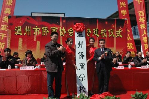 溫州市僑辦、僑商協(xié)會獲悉上述情況后,積極與泰順縣有關部門與領導取得聯(lián)系,并決定為該校捐資120萬元用于校安工程建設,經協(xié)商,新建的學校命名為“溫州僑商學!薄