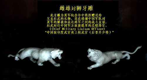 據(jù)悉,此次捐贈儀式交接的一對印度象牙精雕的雌雄獅子,是1943年由英軍元帥蒙巴頓的辦公室主任鮑威爾中將贈送給杜武將軍的私人禮物,意在感謝中國遠(yuǎn)征軍于1942年4月在緬甸仁安羌解救7000名被日軍包圍幾乎彈盡糧絕的英緬軍官兵和500名西方國家的記者、教師和傳教士。這對牙雕曾輾轉(zhuǎn)于印度,重慶,南京,渥太華,卡爾加里。歷經(jīng)68年的蹉跎歲月,如今由侵華日軍南京大屠殺遇難同胞紀(jì)念館收藏并展出。這對牙雕是中國抗戰(zhàn)史上非常稀有的歷史文物,是中國遠(yuǎn)征軍英勇作戰(zhàn),解救英軍的歷史佐證,具有較高的歷史價值。(許嘉明)