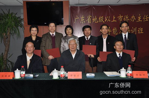中新網(wǎng)4月23日電 據(jù)廣東僑網(wǎng)消息,4月22日上午,廣東省地級(jí)以上市僑辦主任(局長(zhǎng))領(lǐng)導(dǎo)能力培訓(xùn)班舉行結(jié)業(yè)典禮。原全國政協(xié)副主席、北京大學(xué)政府管理學(xué)院院長(zhǎng)羅豪才出席了結(jié)業(yè)典禮并與全體學(xué)員合影留念。