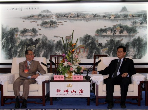 中新網(wǎng)5月13日電 據(jù)山東省僑辦網(wǎng)站消息,5月11日晚,山東省人大副主任崔曰臣在舜耕山莊會見了華僑華人回家“觀世博•游山東”考察團一行。